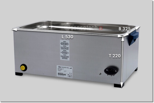 Aussenmasse Gerät Länge x Breite x Tiefe ca. | 530 x 325 x 220 mm, ohne Anbauteile gemessen (Griffe, Drehknöpfe, Ablauf, Netzanschluss) |