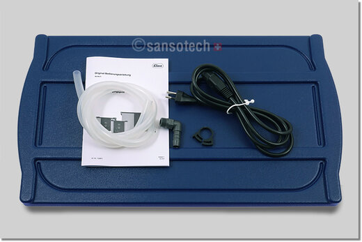 inkl. 1 Netzkabel mit CH-Stecker, 1 Schlauchtülle 90°, 1 m Silikon-Schlauch und 1 Bedienungsanleitung.
