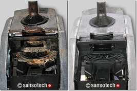 - Bei einigen Verschmutzungen bewirkt sie ein Aufweichen bis Schmelzen. Ähnlich wie die Butter in der Pfanne wird sie fliessfähig und die Haftung nimmt ab. Dadurch verkürzt sich die Behandlungsdauer erheblich.