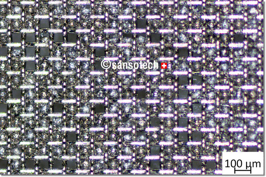 Nach mehreren Siebungen ist das sehr feine Gewebe mit Metallpulver verstopft.